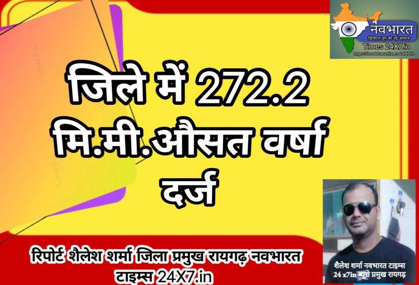 जिले में 272.2 मि.मी.औसत वर्षा दर्ज शैलेश शर्मा 9406308437नवभारत टाइम्स 24×7.in जिला ब्यूरो रायगढ़ रायगढ़, 12 जुलाई 2024/ चालू वर्षा मौसम में रायगढ़ जिले में