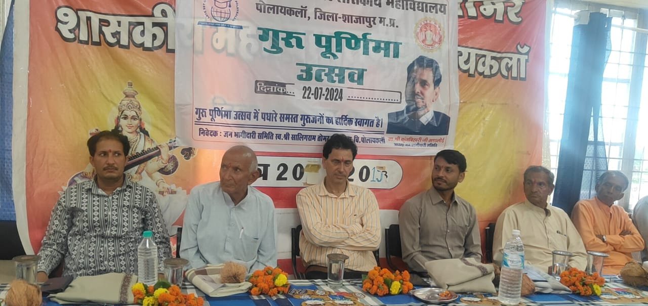 शाजापुर ब्यूरो मुकेश शर्मा शालिग्राम तोमर शासकीय महाविद्यालय पोलायकलां में गुरु पूर्णिमा उत्सव मनाया गया जिसमें जनभागीदारी समिति अध्यक्ष कुंजबिहारी मणलोई योग शिक्षक कन्हैयालाल पडियार