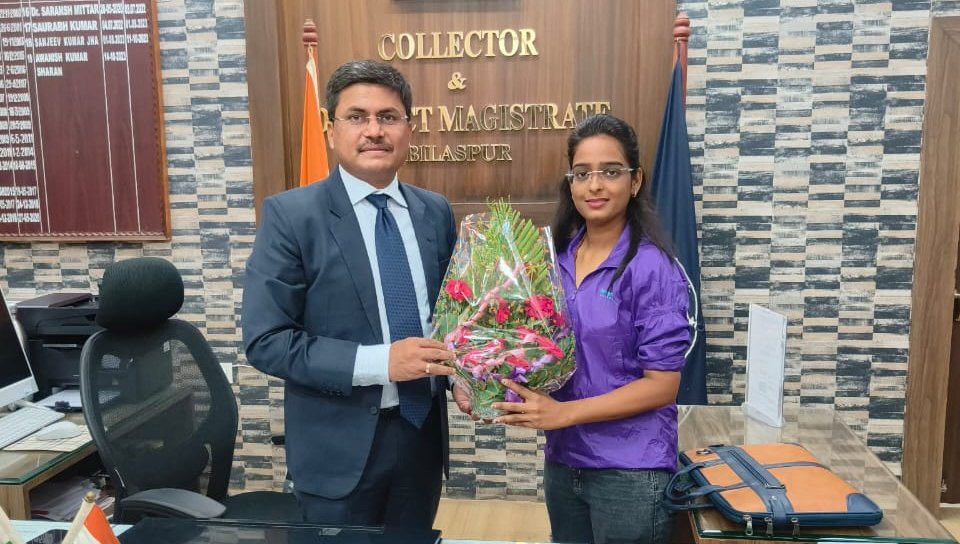बिलासपुर : यूरोप महाद्वीप की सबसे ऊँची चोटी पर बिलासपुर की बेटी सुश्री निशा यादव ने तिरंगा लहराया। वापस आकर आज कलेक्टर श्री अवनीश शरण