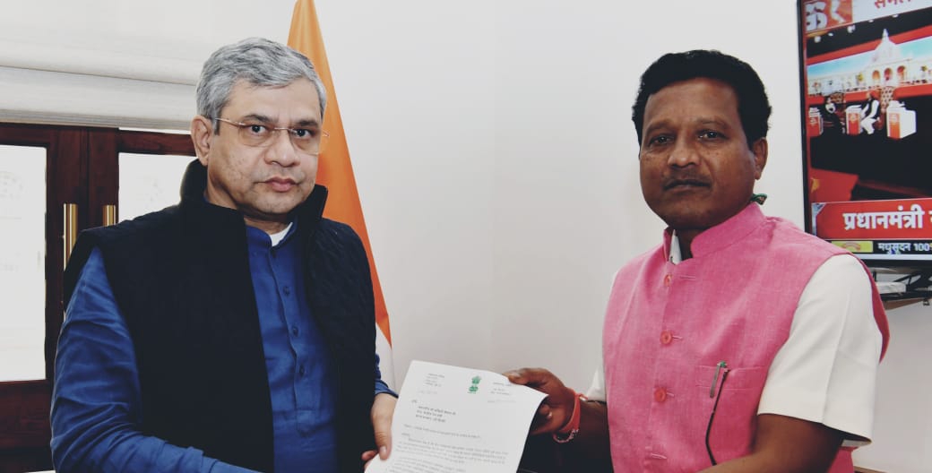 शैलेश शर्मा 9406308437नवभारत टाइम्स 24×7.in जिला ब्यूरो रायगढ़ रायगढ़। संसद सत्र के दौरान रायगढ़ सांसद राधेश्याम राठिया ने केंद्रीय रेल मंत्री अश्विनी वैष्णव से मुलाकात
