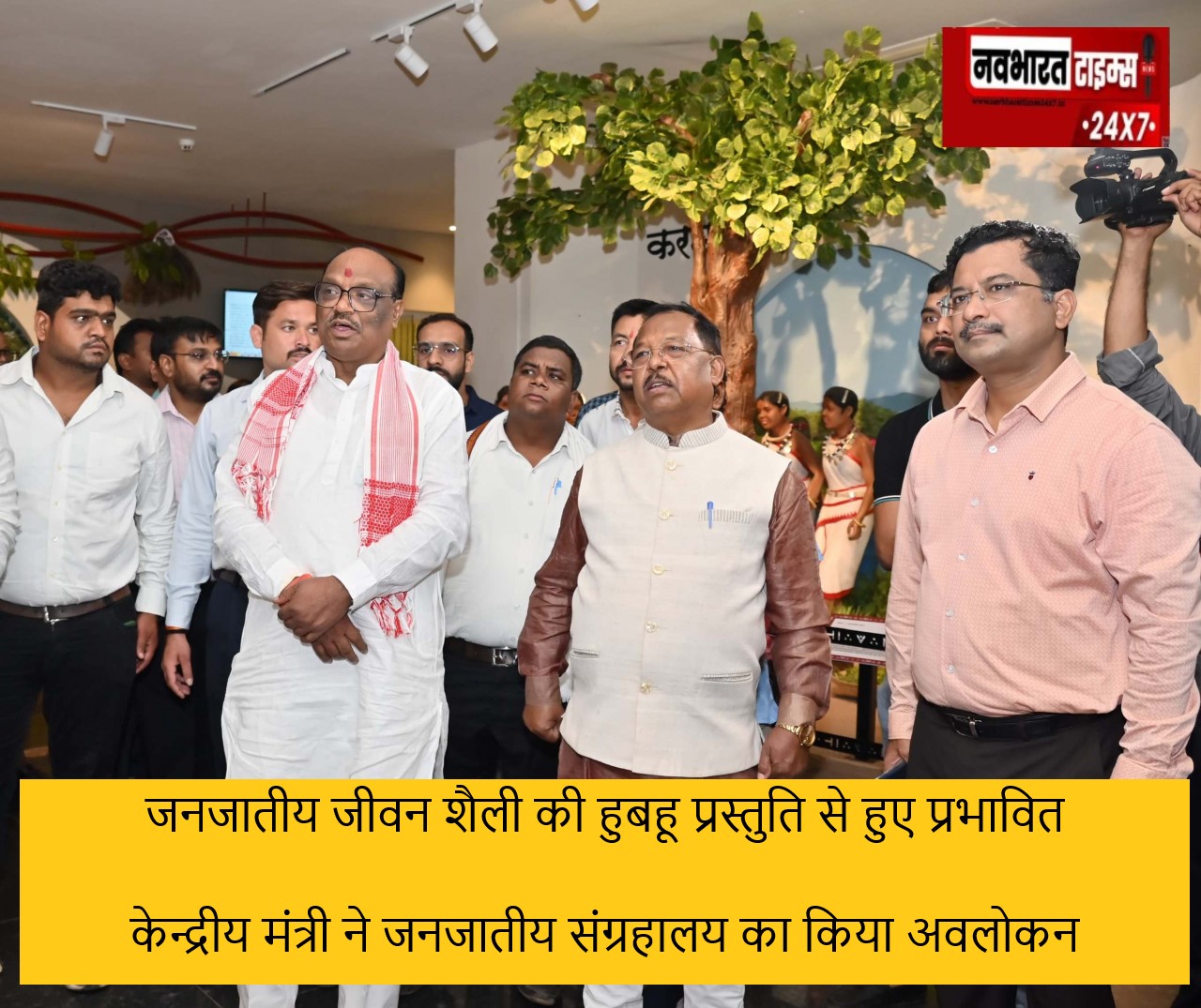छत्तीसगढ़ की जनजातीय संस्कृति, परंपरा और जीवनशैली पर आधारित जनजातीय संग्रहालय का केन्द्रीय जनजातीय राज्य मंत्री दुर्गा दास उइके ने अवलोकन किया और नवा रायपुर