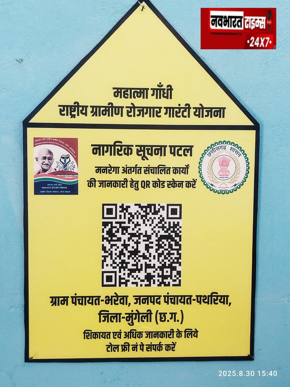 क्यूआर कोड से मनरेगा कार्यों की निगरानी,03 वर्षों के कार्यों की मिलेगी जानकारी निर्मल अग्रवाल ब्यूरो चीफ मुंगेली 8959931111 मुंगेली-महात्मा गाँधी राष्ट्रीय ग्रामीण रोजगार गारंटी