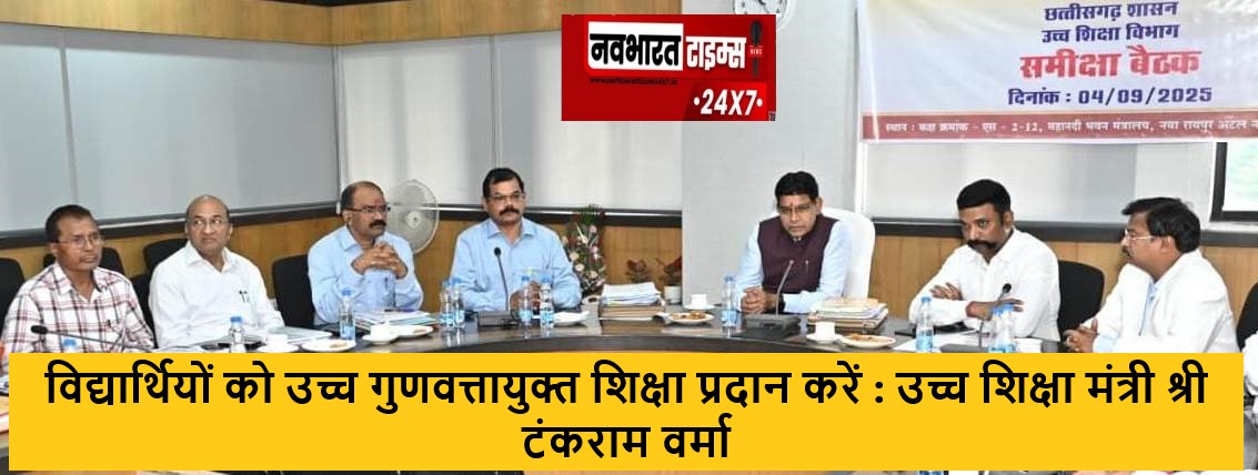 रायपुर, 04 सितम्बर 2025:उच्च शिक्षा मंत्री टंकराम वर्मा ने कहा है कि छत्तीसगढ़ के विश्वविद्यालय अपने विद्यार्थियों को उच्च स्तरीय गुणवत्ता पूर्ण शिक्षा प्रदान करें,