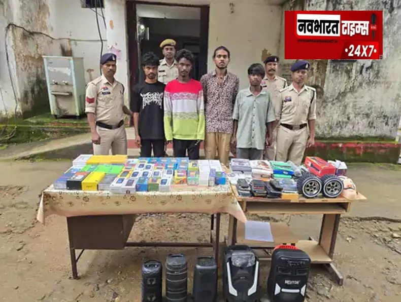 जशपुर। जिले में बीते दिनों हुई मोबाइल शॉप चोरी का पुलिस ने सफलतापूर्वक खुलासा कर चार आरोपियों को गिरफ्तार किया है। आरोपियों के कब्जे से