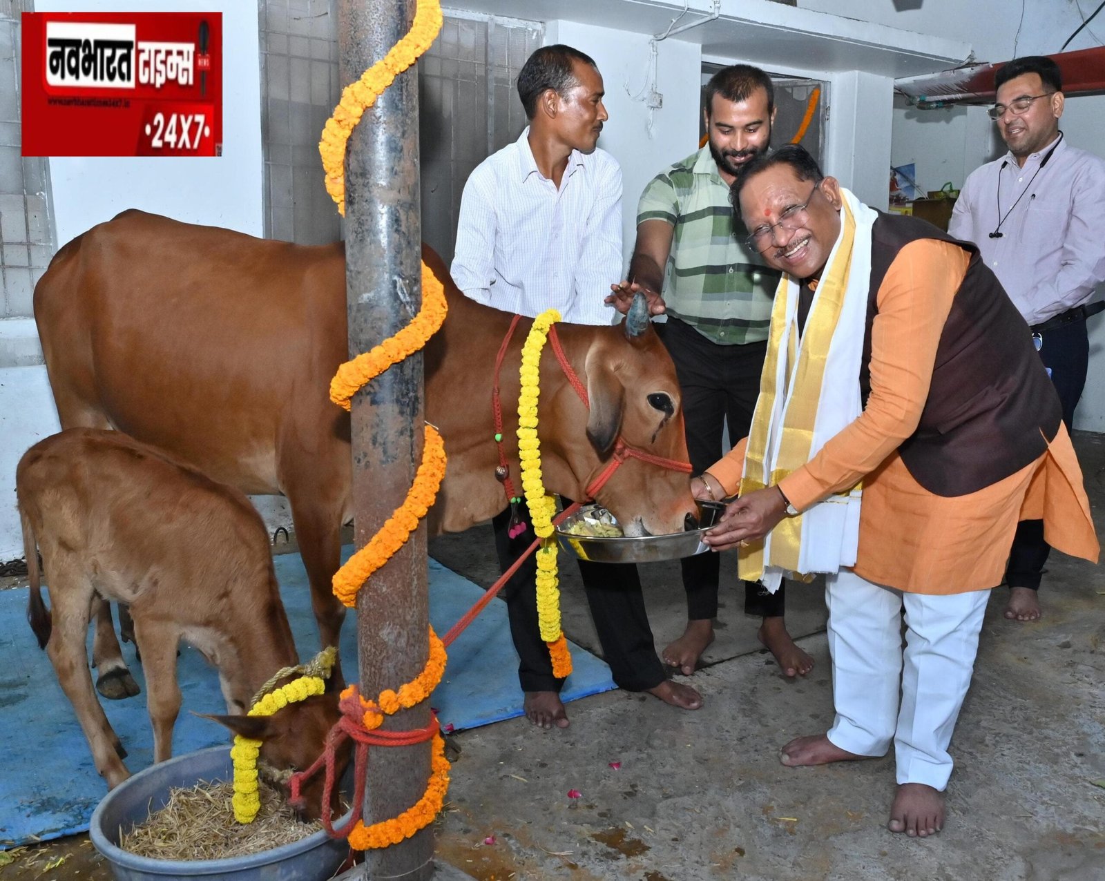 रायपुर, 22 अक्टूबर 2025।गोवर्धन पूजा के पावन अवसर पर मुख्यमंत्री विष्णु देव साय ने आज रायपुर स्थित मुख्यमंत्री निवास परिसर की गौशाला में पारंपरिक विधि-विधान से गौमाता की पूजा-अर्चना की। उन्होंने