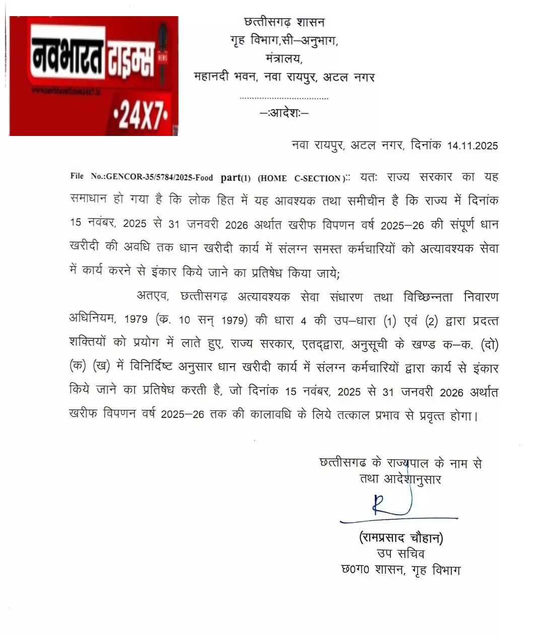 रायपुर। छत्तीसगढ़ में आज 15 नवंबर से समर्थन मूल्य पर धान खरीदी की शुरुआत हो गई है। राज्य सरकार इस सीजन में 25 लाख से