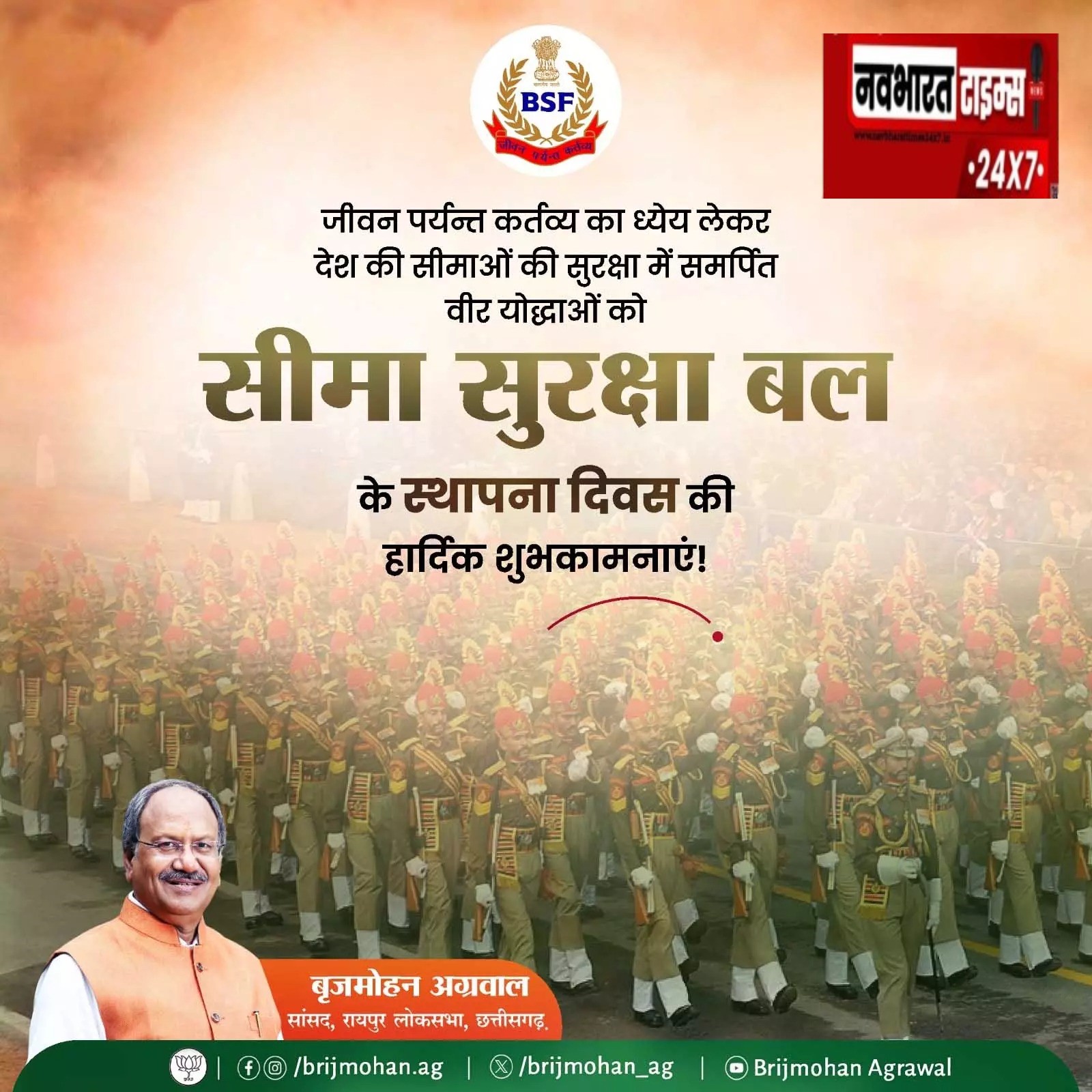 सीमाओं की सुरक्षा में तत्पर BSF जवानों को सांसद ने किया नमन, पूर्व सैनिकों और परिजनों के प्रति जताया आभार रायपुर। सांसद बृजमोहन अग्रवाल ने सीमा सुरक्षा