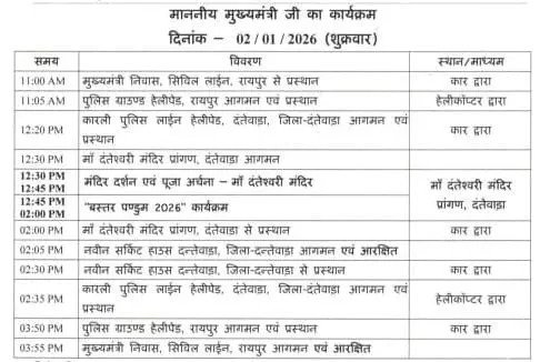 रायपुर: मुख्यमंत्री विष्णु देव साय आज दंतेवाड़ा के अहम दौरे पर रहेंगे। वे सुबह 11 बजे रायपुर से दंतेवाड़ा के लिए रवाना होंगे। दौरे की शुरुआत वे मां दंतेश्वरी