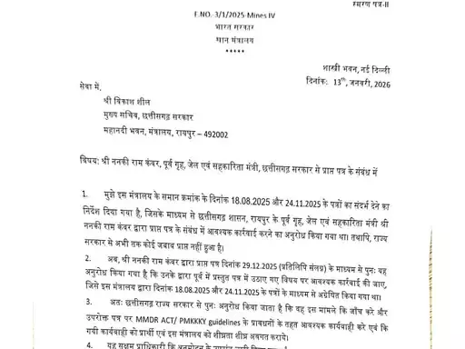 कोरबा: डिस्ट्रिक्ट मिनरल फंड (DMF) के कथित दुरुपयोग के मामले में प्रधानमंत्री कार्यालय (PMO) ने संज्ञान लेते हुए केंद्र सरकार के माध्यम से छत्तीसगढ़ के मुख्य