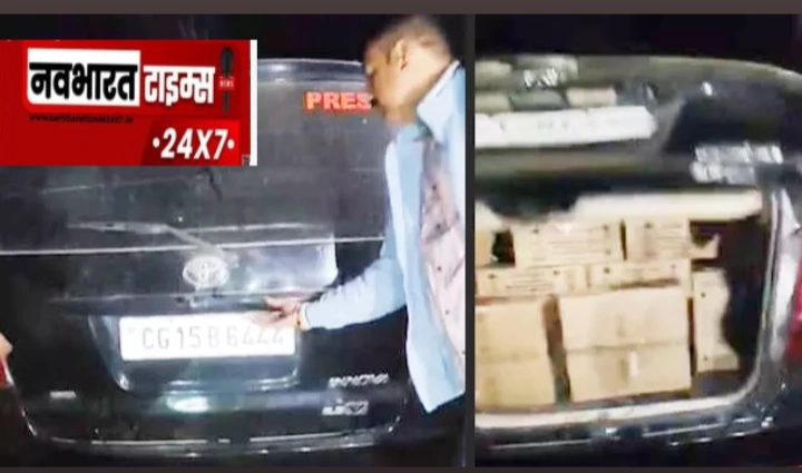 अंबिकापुर: जिले में शराब तस्करी का एक अनोखा मामला सामने आया है, जहां तस्कर लग्जरी ब्लैक इनोवा कार पर ‘PRESS’ लिखवाकर मध्यप्रदेश से अवैध रूप से