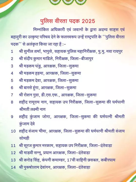 26 जनवरी को 14 पुलिस अधिकारी-जवानों को मिलेगा पुलिस वीरता पदक