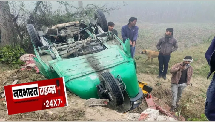 लखीमपुर खीरी: घने कोहरे के कारण हुए एक भीषण सड़क हादसे में ई-रिक्शा पलट गया, जिससे चालक सहित तीन मासूम बच्चों की मौके पर ही मौत
