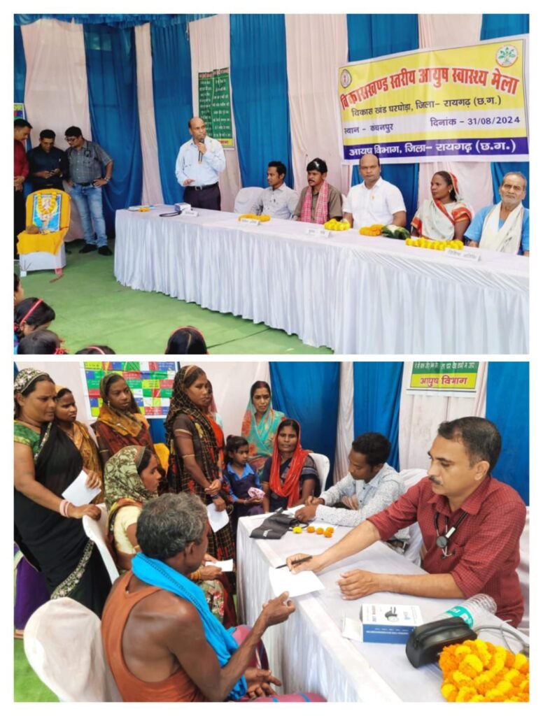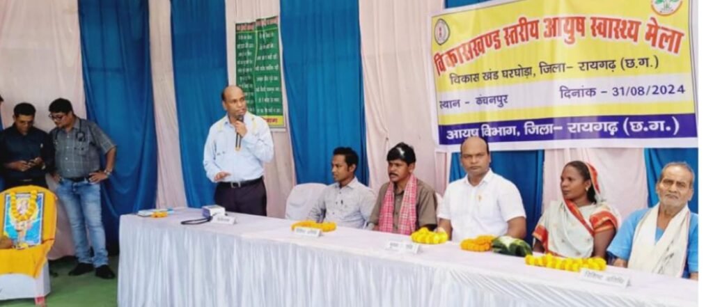 शैलेश शर्मा घरघोड़ा : छःग शासन एवं संचालक आयुष विभाग के दिशा निर्देशानुसार जिला आयुर्वेद अधिकारी डॉक्टर मीरा भगत एवं खंड चिकित्सा अधिकारी डॉक्टर एस आर पैकराकी कुशल मार्गदर्शन में विकास खंड घरघोड़ा के ग्राम कंचनपुर में कल दिनांक 31/8/24को शनिवार को स्कूल परिसर में विकास खंड स्तरीय आयुष स्वास्थ्य मेला का आयोजन किया गया जिसमें कुल 294 रोगियों का निदान कर जिसमें 55 रोगियों का रक्त परीक्षण कर नि शुल्क दवाई वितरण किया गया।
