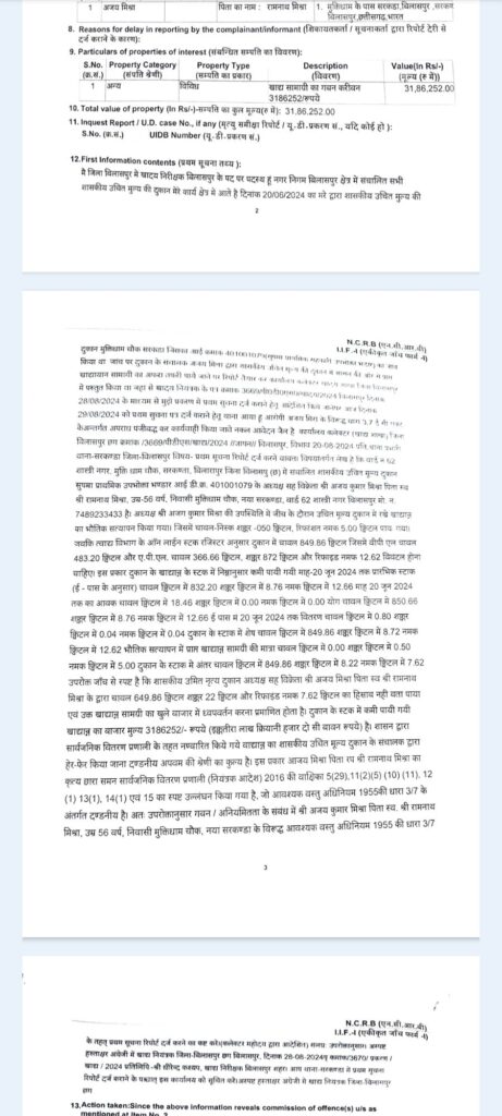 अजय मिश्रा द्वारा संचालित राशन दुकान में 31 लाख 86 हजार 252 रुपये की राशन की कमी पाई गई. दूसरी दुकान, जिसे कैलाशनाथ मिश्रा संचालित कर रहे थे, वहां 10 लाख 20 हजार 169 रुपये की खाद्यान्न की कमी पाई गई।
