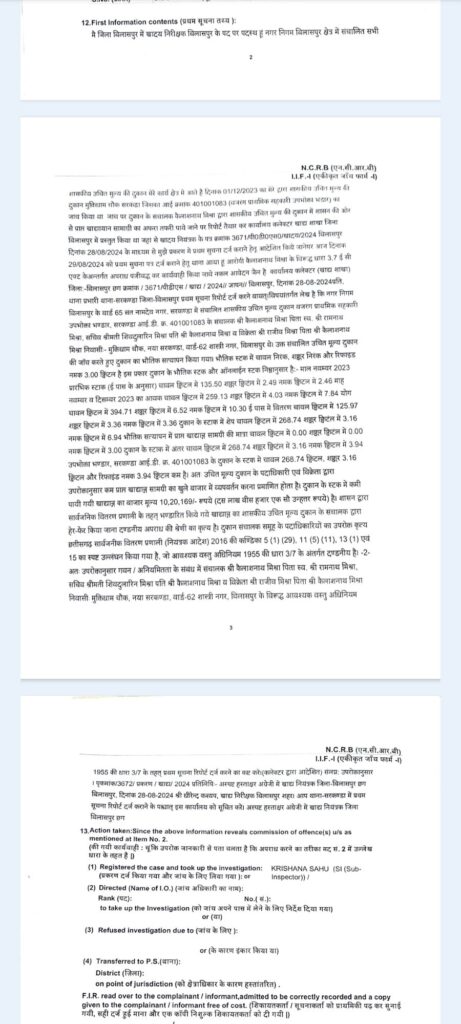 कलेक्टर अवनीश शरण के निर्देश पर खाद्य विभाग ने इस मामले की जांच की और यह खुलासा हुआ खाद्य निरीक्षकों ने मुक्तिधाम चौक सरकंडा में संचालित राशन दुकानों की गहन जांच की।