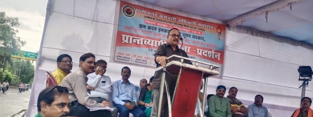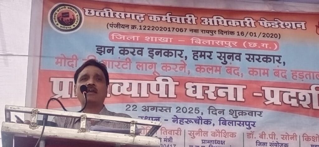 बिलासपुर छत्तीसगढ़ अधिकारी-कर्मचारी फेडरेशन के बैनर तले प्रदेशभर में आज करीब 5 लाख कर्मचारी हड़ताल पर हैं। कर्मचारियों ने अपनी 11 सूत्रीय मांगों को लेकर कलमबंद और कार्यबंद आंदोलन करते हुए सरकारी दफ्तरों का बहिष्कार किया। फेडरेशन ने साफ तौर पर चेताया है कि यदि उनकी मांगों को लेकर सरकार ने जल्द सकारात्मक पहल नहीं की, तो यह आंदोलन अनिश्चितकालीन हड़ताल में तब्दील हो सकता है।