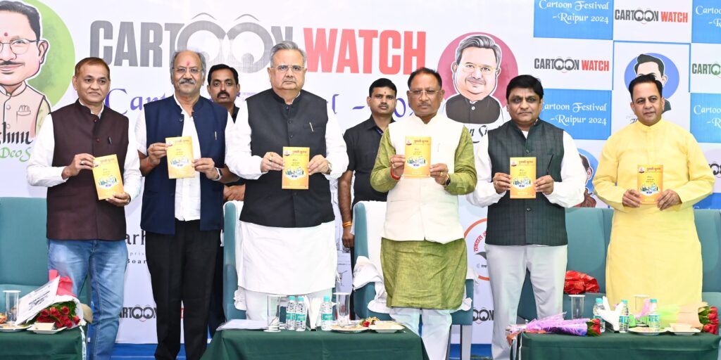 रायपुर। मुख्यमंत्री विष्णु देव साय राजधानी रायपुर के एक निजी होटल में कार्टून वॉच पत्रिका द्वारा आयोजित कार्टून फेस्टिवल-2024 में शामिल हुए। मुख्यमंत्री विष्णुदेव साय ने कार्टून फेस्टिवल-2024 कार्यक्रम को संबोधित करते हुए कहा कि कार्टून एक ऐसी कला जिसके द्वारा बहुत थोड़ी जगह में पूरी बात को स्पष्टता के साथ मनोरंजक और व्यंगात्मक ढंग से व्यक्त किया जाता है। छोटा सा कार्टून बड़ी बात कहता है। कभी-कभी सम्पादकीय में जिस बात को आधे पेज में लिखा जाता है, उसे सिर्फ एक कार्टून के माध्यम से व्यक्त कर दिया जाता है ।