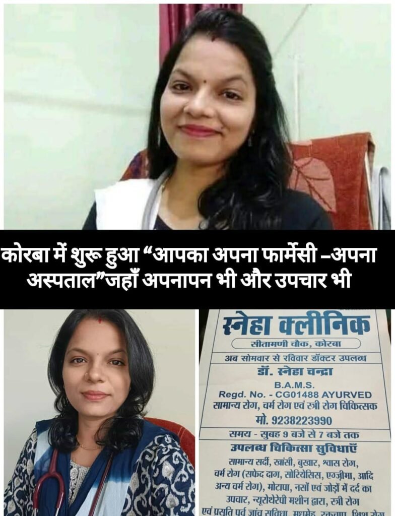 कोरबा। शहर के सीतामणी चौक कोरबा क्षेत्र में अब लोगों को स्वास्थ्य सेवाओं के लिए दूर जाने की जरूरत नहीं है। यहाँ खुला है “आपका अपना फार्मेसी – अपना अस्पताल”, जो आयुर्वेद और प्राकृतिक चिकित्सा पद्धति के माध्यम से रोगियों को संपूर्ण स्वास्थ्य लाभ प्रदान कर रहा है।
