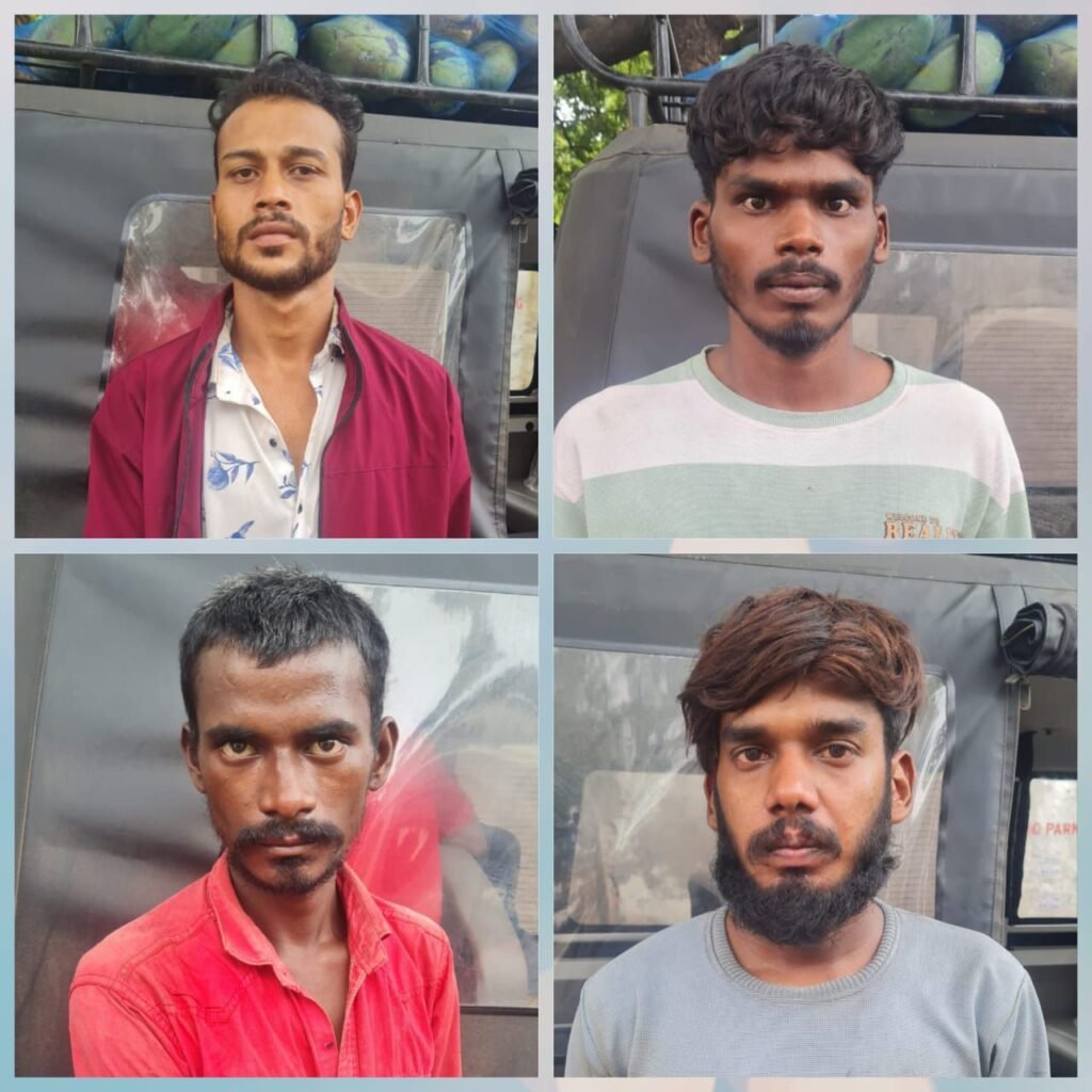 04 दुर्गेश कुमार साहू पिता कालूराम साहू उम्र 23 साल निवासी ग्राम दनिया थाना गण्डई जिला के.सी.जी. हाल पता गोकुल नगर थाना गुढ़ियारी जिला रायपुर।