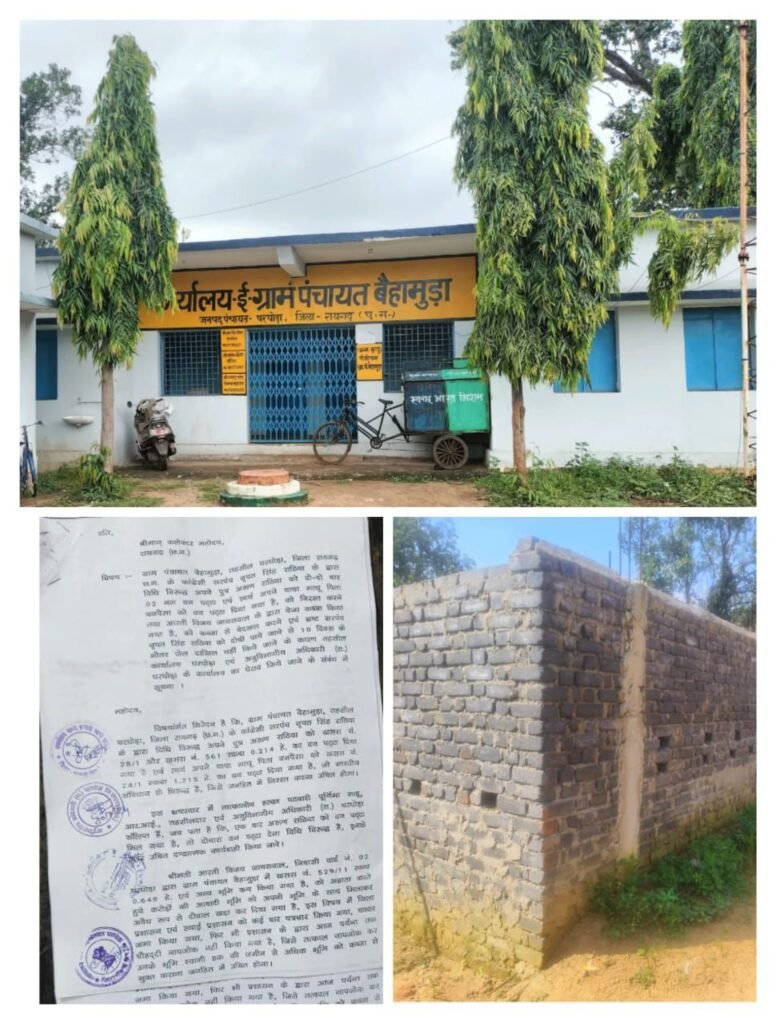 बैहामुड़ा के सरपंच पर राशन में हेराफेरी,तालाब लीज देने के साथ साथ एक बड़ा आरोप लगा है बाहरी लोगो को सरकारी जमीन पर कब्जा करवाने में शह देने का । बैहामुडा में घरघोड़ा नप के एक पार्षद द्वारा सरपंच की शह पर करोड़ो की शासकीय जमीन को दीवार घेर कर कब्जा किये जाने का गम्भीर आरोप लगा है.