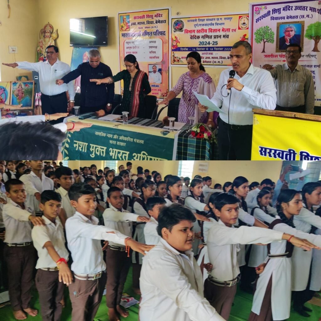 (विनय ठाकुर ) : आज ज़िला मुख्यालय बेमेतरा में कलेक्टर रणबीर शर्मा ने युवाओं को नशा मुक्ति की शपथ दिलाई। नशा मुक्त भारत अभियान के अंतर्गत, सरस्वती शिशु मंदिर, शासकीय बालक उच्चतर माध्यमिक विद्यालय और पीजी कॉलेज बेमेतरा में यह कार्यक्रम आयोजित हुआ।