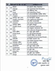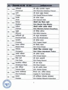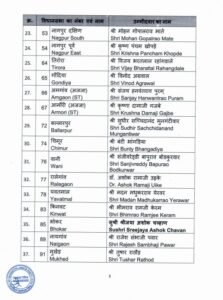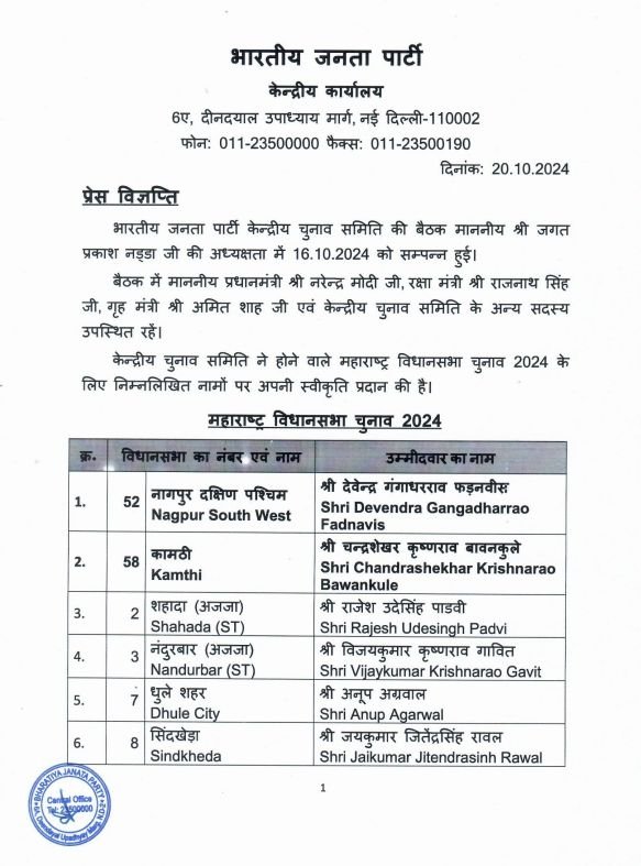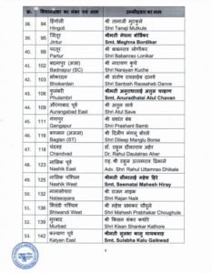 इस लिस्ट में डिप्टी सीएम देवेंद्र फडणवीस को नागपुर साउथ वेस्ट से उम्मीदवार बनाया गया है। इसके अलावा, प्रदेश अध्यक्ष चंद्रशेखर बावनकुले, मंत्री गिरीश महाजन, सुधीर मुनगंटीवार, अतुल सावे जैसे वरिष्ठ नेताओं के नाम शामिल हैं।