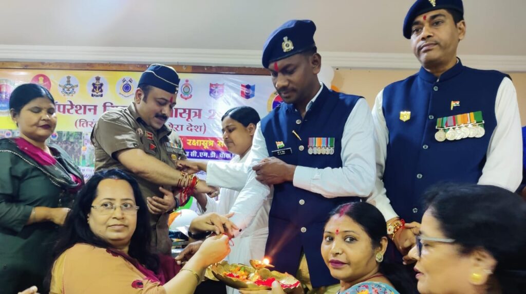 (गौतम बाल बोंदरे) : भारतीय जनता पार्टी की महिला विंग के सदस्यों ने पूर्व सैनिकों सहित के कलाई पर राखी बांध कर रक्षा बंधन पर्व मनाया भाजपा महिला मोर्चा जिलाध्यक्ष जयश्री चौकसे के नेतृत्व में महिला मोर्चा की बहनों ने जिले के विभिन्न सामाजिक संगठनो और स्कूलों से 17051 नग रक्षासूत्र संकलन कर देश के सीमाओं की सुरक्षा में तैनात जवानों तक पहुंचाई .