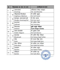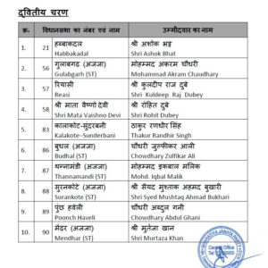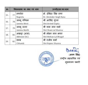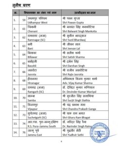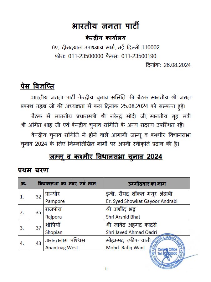 भाजपा की इस लिस्ट में तीनों चरणों में आने वाली सीटों पर उम्मीदवारों के नाम शामिल हैं। जम्मू-कश्मीर में तीन चरणों में मतदान होना है, जिसका पहला राउंड 18 सितंबर को होगा।