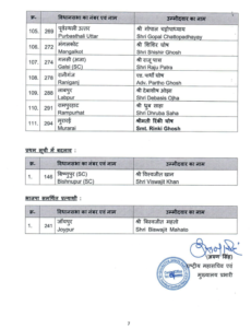 खास बात यह है कि सोनारपुर दक्षिण से रूपा गांगुली को टिकट दिया गया है। वहीं, नेता प्रतिपक्ष शुभेंदु अधिकारी के भाई दिब्येंदु अधिकारी को भी उम्मीदवार बनाया गया है। इससे चुनावी माहौल और गरमा गया है।