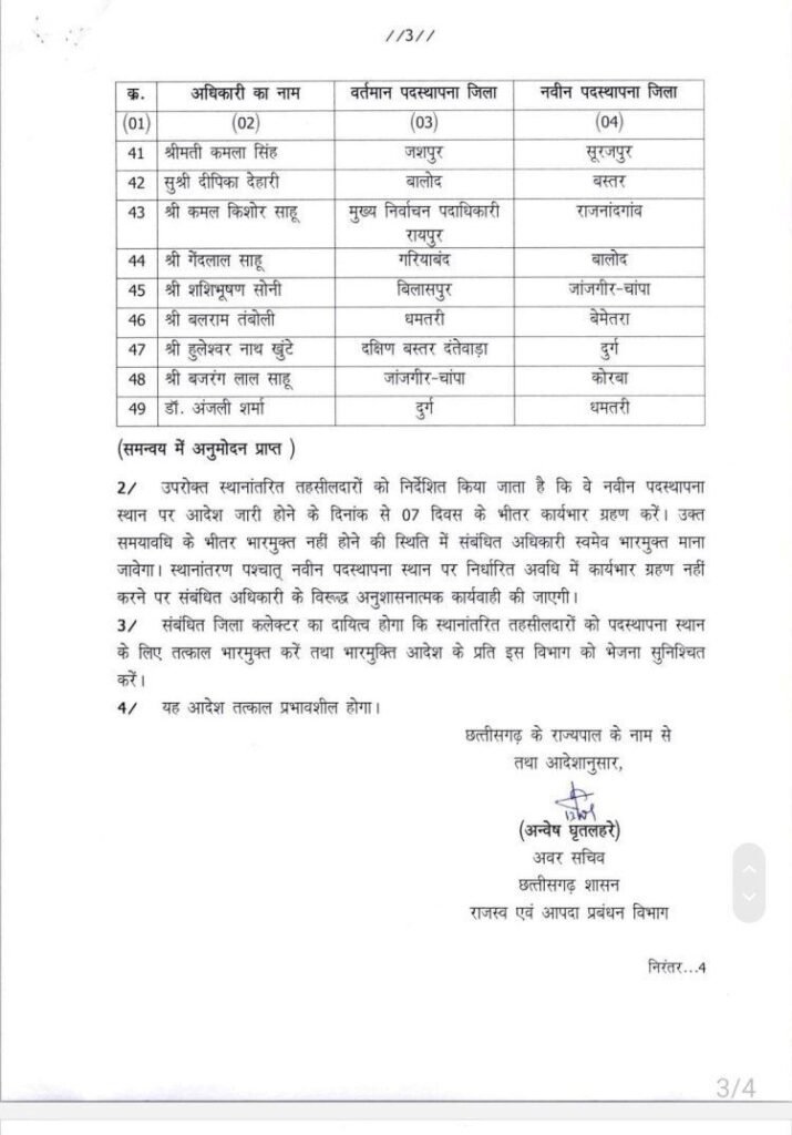 ब्रेकिंग: बड़ी संख्या में बदले गए तहसीलदार, राज्य सरकार ने जारी किया आदेश..