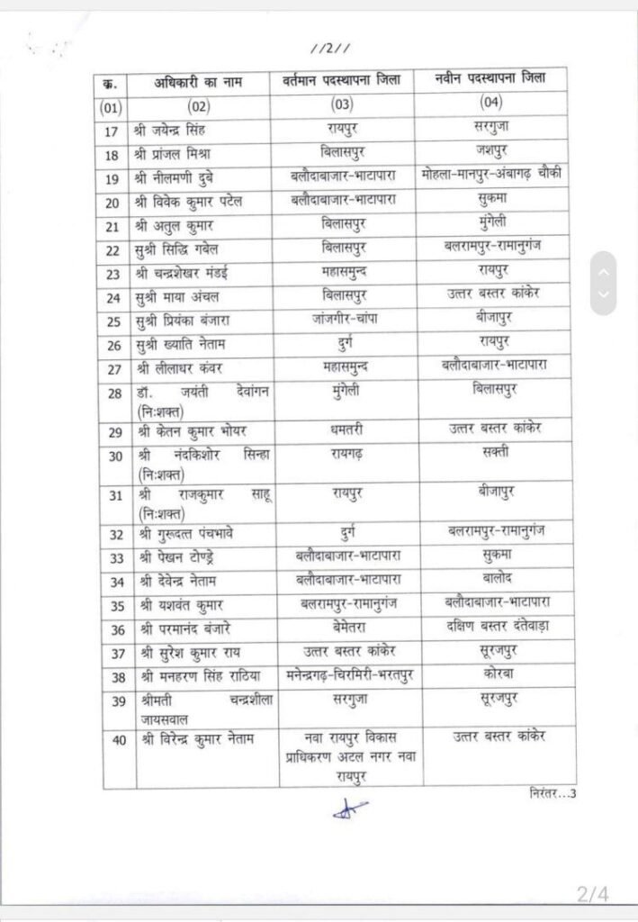 इस लिस्ट में कुछ चर्चित नाम है जिन्हे बस्तर और जशपुर इलाके की रवानगी दी गई है।