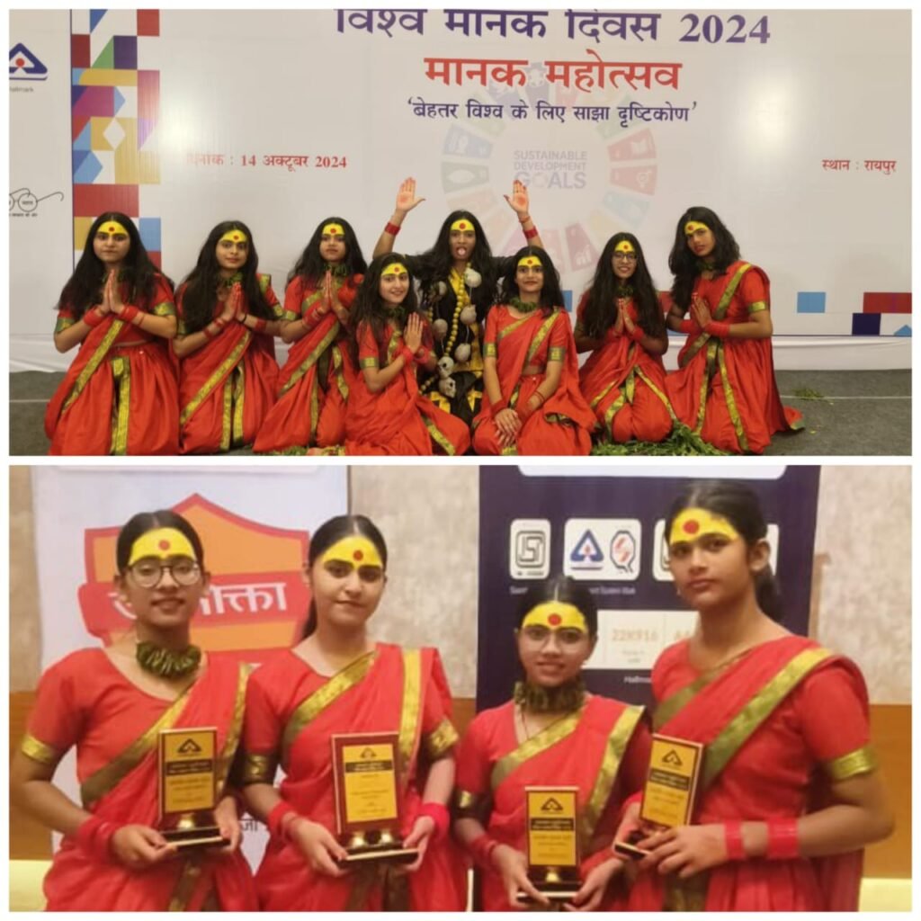 आरंग.भारतीय मानक ब्यूरो रायपुर शाखा के तत्वावधान में विश्व मानक दिवस पर होटल कोर्टयार्ड मैरियट लाभंडी रायपुर में रायपुर सांसद बृजमोहन अग्रवाल जी के मुख्य आतिथ्य में आयोजित मानक महोत्सव कार्यक्रम का आयोजन किया गया जिसमे स्टैंडर्ड प्रमोशन करने वाले सभी फर्म, स्वायत्त संस्थान एवम स्कूलों में गठित स्टैंडर्ड क्लब के मेंटर और सदस्यों को प्रतिभा सम्मान हेतु आमंत्रित किया गया था। उक्त महोत्सव में स्टैंडर्ड क्लब प्रभारी शिक्षक मनोज शर्मा के मार्गदर्शन में अरुंधती देवी शास अंग्रेजी माध्यम विद्यालय की छात्राओं ने रंगारंग सांस्कृतिक प्रतियोगिता में अपनी अप्रतिम प्रतिभा का परिचय देते हुए देवी महिमा पर आधारित शानदार नृत्य प्रस्तुत किया जिसे दर्शक दीर्घा में उपस्थित समस्त लोगों ने काफी प्रोत्साहित किया।