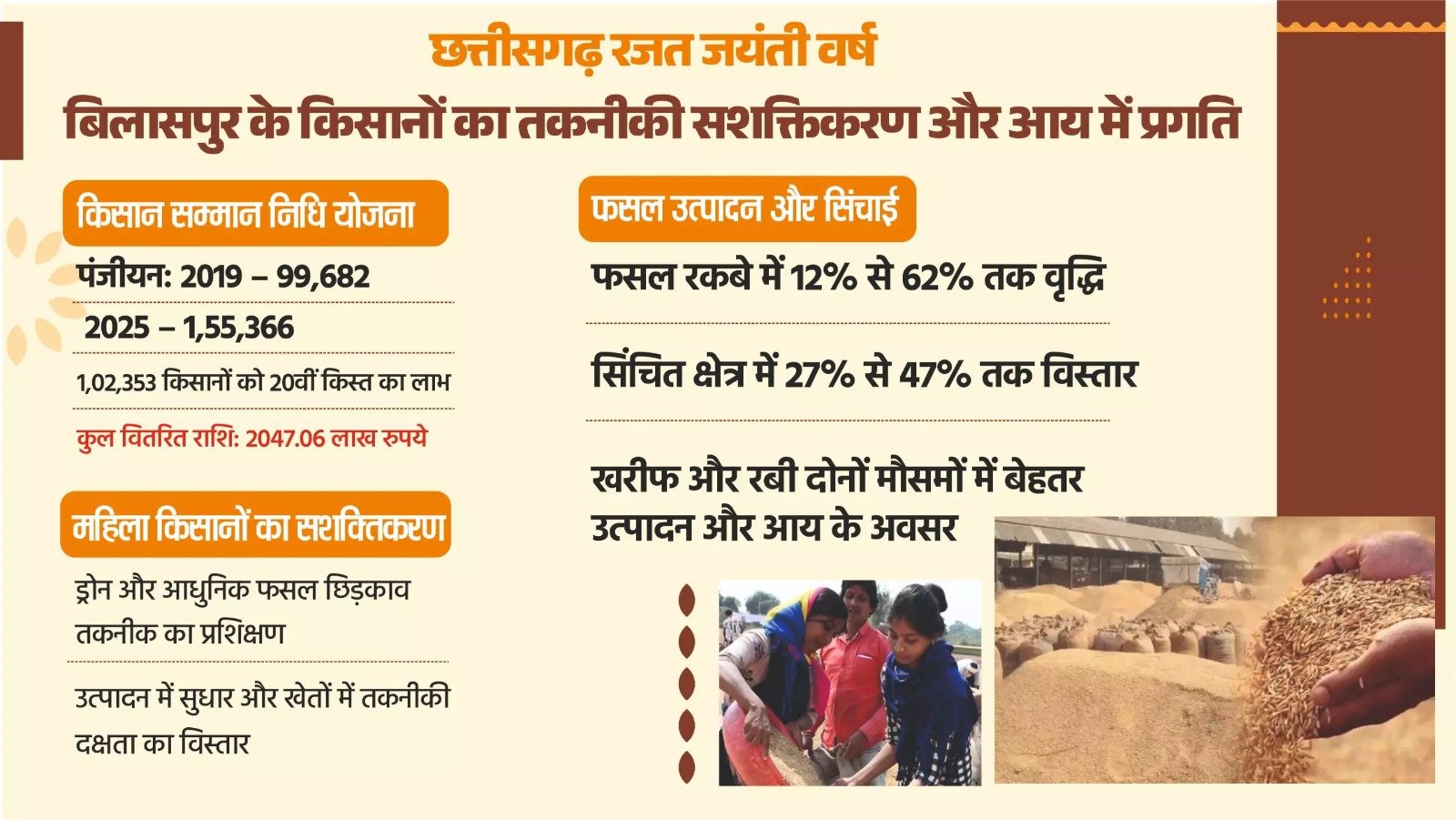 बिलासपुर में कृषि विकास को मिली नई दिशा बिलासपुर: जिले में किसानों की आय बढ़ाने और उन्हें आधुनिक कृषि तकनीकों से जोड़ने के लिए पिछले