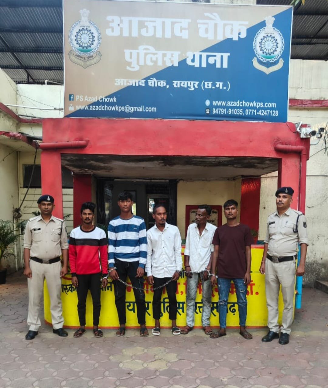 अखिलेश खटोड़ नवभारत टाइम्स 24 x7in ब्यूरो प्रमुख रायपुर रायपुर,, आसामाजिक तत्वों के खिलाफ थाना आजाद चौक पुलिस ने कार्यवाही करते हुए 5 के खिलाफ