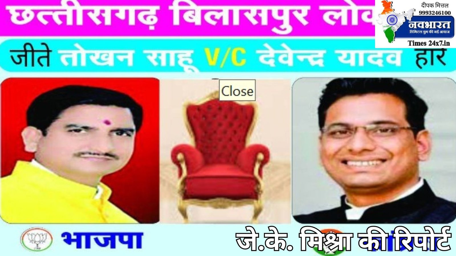 नव भारत टाइम्स 24 x 7 के ब्यूरो चीफ जे.के. मिश्रा की रिपोर्ट: छत्तीसगढ़ राज्य के निर्माण के बाद अब तक हुए लोकसभा चुनाव में