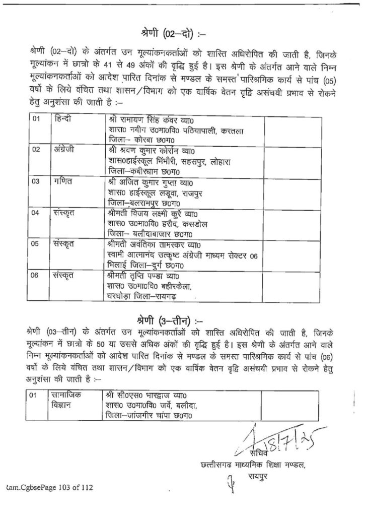 59 शिक्षक: 3 साल तक मूल्यांकन कार्य से प्रतिबंधित, एक इंक्रीमेंट रोका जाएगा।