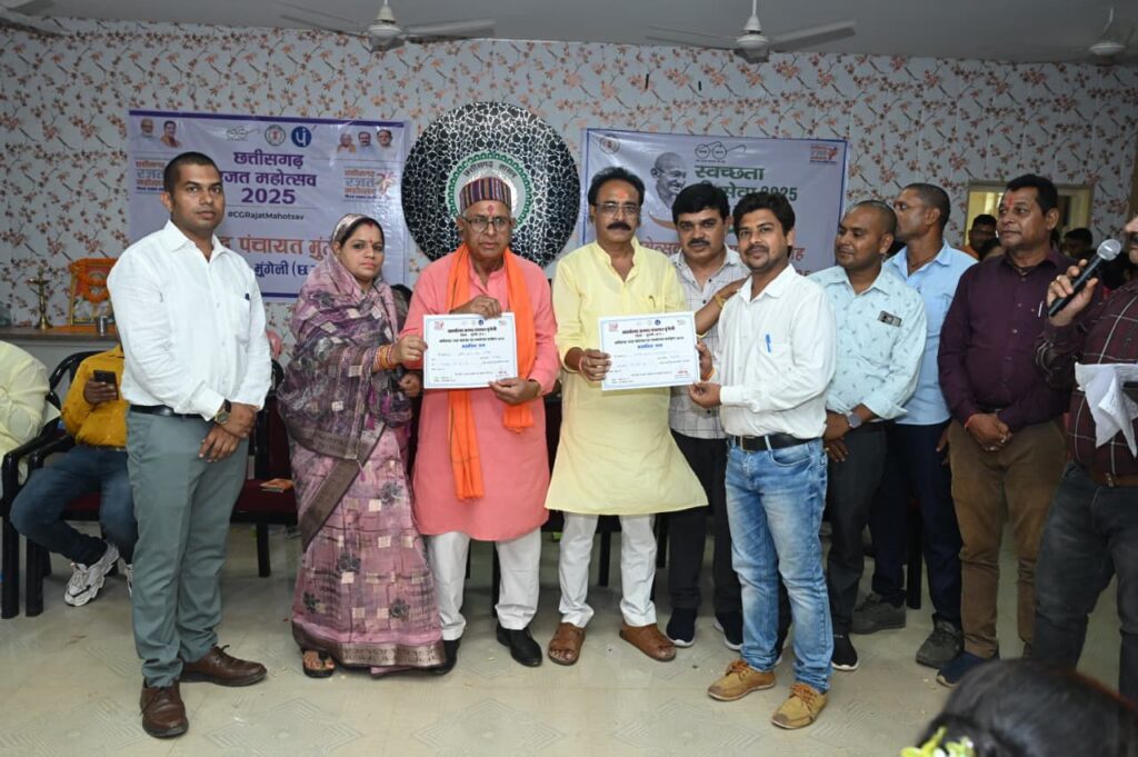 इस अवसर पर जनपद पंचायत मुंगेली की कुल 25 पंचायतों को विभिन्न योजनाओं में उल्लेखनीय कार्य करने पर स्मृति चिन्ह एवं प्रशस्ति पत्र प्रदान कर सम्मानित किया गया। इनमें 05 पंचायतों को आवास योजना, 05 पंचायतों को मनरेगा अंतर्गत मोर गांव-मोर पानी अभियान, 05 पंचायतों को स्वच्छ भारत मिशन, 05 पंचायतों को पंचायत अभिलेख संधारण और 05 पंचायतों को बिहान योजना में उत्कृष्ट कार्य के लिए सम्मानित किया गया।