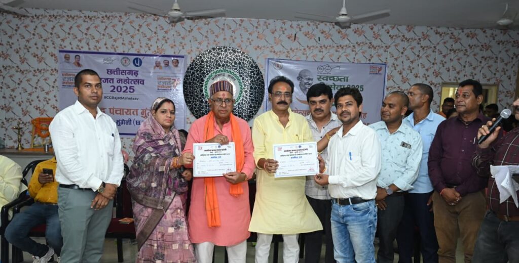 इस अवसर पर जनपद पंचायत मुंगेली की कुल 25 पंचायतों को विभिन्न योजनाओं में उल्लेखनीय कार्य करने पर स्मृति चिन्ह एवं प्रशस्ति पत्र प्रदान कर सम्मानित किया गया। इनमें 05 पंचायतों को आवास योजना, 05 पंचायतों को मनरेगा अंतर्गत मोर गांव-मोर पानी अभियान, 05 पंचायतों को स्वच्छ भारत मिशन, 05 पंचायतों को पंचायत अभिलेख संधारण और 05 पंचायतों को बिहान योजना में उत्कृष्ट कार्य के लिए सम्मानित किया गया।
