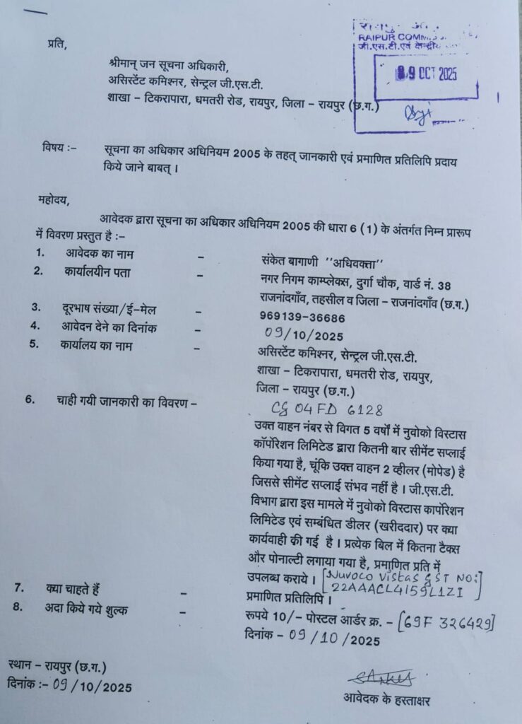 हमने जीएसटी विभाग को एक महीने पहले आरटीआई भेजी थी, पर कोई जवाब नहीं मिला। सवाल है — क्यों? क्या कोई अधिकारी इस कंपनी के साथ जुड़ा हुआ है? अगर यही मामला किसी छोटे व्यापारी का होता, तो उसका जीएसटी नंबर तुरंत रद्द कर दिया जाता और उसे जेल भेज दिया जाता।”
