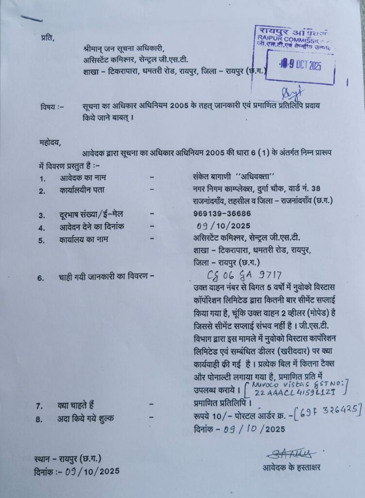 राजनांदगांव के अधिवक्ता संकेत बागानी द्वारा सूचना के अधिकार अधिनियम (RTI) के तहत मांगी गई जानकारी ने इस पूरे घोटाले का पर्दाफाश किया है परंतु जीएसटी विभाग की खामोशी अब खुद शक के घेरे में है।