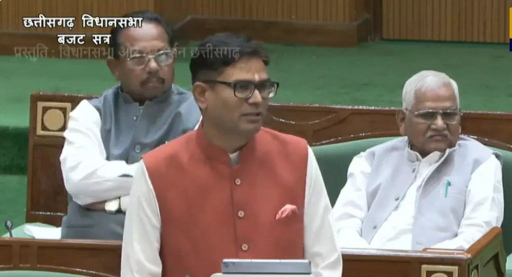 रायपुर: छत्तीसगढ़ विधानसभा में वित्त मंत्री ओपी चौधरी ने वित्तीय वर्ष 2026-27 का बजट पेश किया। ‘ज्ञान’ और ‘गति’ के बाद इस बार बजट की थीम ‘संकल्प’ रखी गई है। बजट पेश करने से पहले मंत्री ने अपने बंगले स्थित मंदिर में पूजा-अर्चना की। इस दौरान उनकी पत्नी अदिति चौधरी भी मौजूद रहीं।