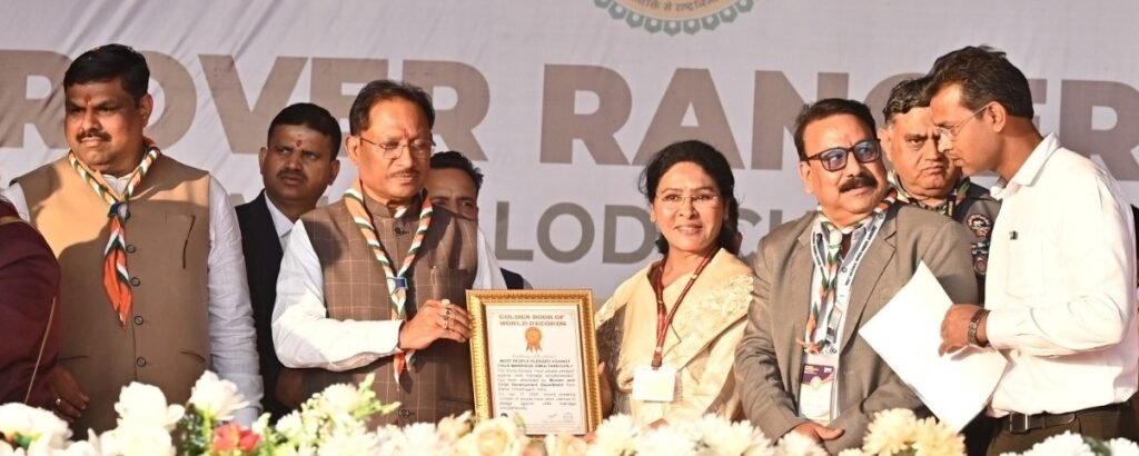 रायपुर/ जिला मुख्यालय बालोद के समीप ग्राम दुधली में आयोजित देश की प्रथम राष्ट्रीय रोवर-रेंजर जंबूरी के समापन अवसर पर मुख्यमंत्री विष्णु देव साय ने बाल विवाह जैसी सामाजिक कुरीति की रोकथाम के लिए जनभागीदारी सुनिश्चित करने के उद्देश्य से उपस्थित रोवर-रेंजरों, स्काउट-गाइड एवं जनसमुदाय को शपथ दिलाई। इस अवसर पर एक साथ 20 हजार से अधिक लोगों द्वारा बाल विवाह रोकथाम की शपथ लेकर गोल्डन बुक ऑफ वर्ल्ड रिकार्ड्स में बालोद जिले का नाम दर्ज कराया गया, जो बालोद जिले के लिए ऐतिहासिक उपलब्धि है।