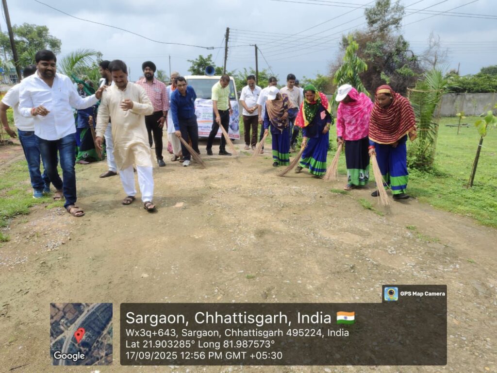 सरगांव- दिनांक 17 सितंबर 2025 को नगर पंचायत सरगांव के अटल परिसर से हरी झंडी दिखाकर रजत जयंती महोत्सव एवं “स्वच्छता ही सेवा” 2025 अंतर्गत – स्वच्छता पखवाड़ा” अभियान की शुरुआत बड़े उत्साह के साथ की गई, जो स्वच्छ भारत मिशन के तहत पर्यावरण संरक्षण और स्वास्थ्य जागरूकता को बढ़ावा देने वाला महत्वपूर्ण कदम है।अभियान के तहत अटल परिसर में सफाई अभियान चलाया गया।