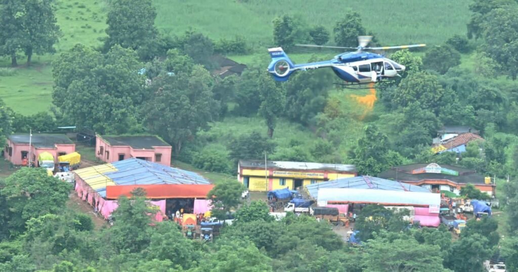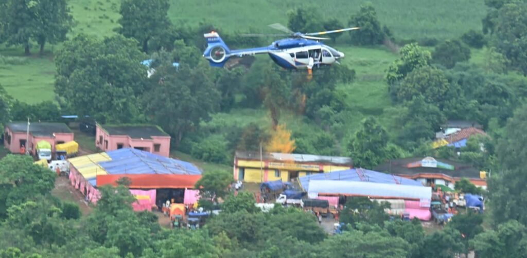 रायपुर : मुख्यमंत्री विष्णु देव साय ने आज कबीरधाम जिले के भोरमदेव में शिव भक्तों पर हेलीकॉप्टर से पुष्प वर्षा की। इस दौरान उपमुख्यमंत्री विजय शर्मा साथ थे। मुख्यमंत्री ने आज भोरमदेव में सावन सोमवार के अवसर पर हजारों की संख्या में पहुंचे शिव भक्तों, जो सैकड़ों किलोमीटर पैदल यात्रा कर शिवजी का जल अभिषेक करने आए हैं।