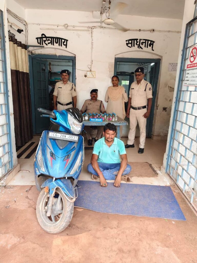 1. संतोष कश्यप (उम्र 39 वर्ष, मुंगेली) के कब्जे से 19 पाव देशी शराब (कुल 3.42 बल्क लीटर) और अन्य सामग्री जप्त की गई।