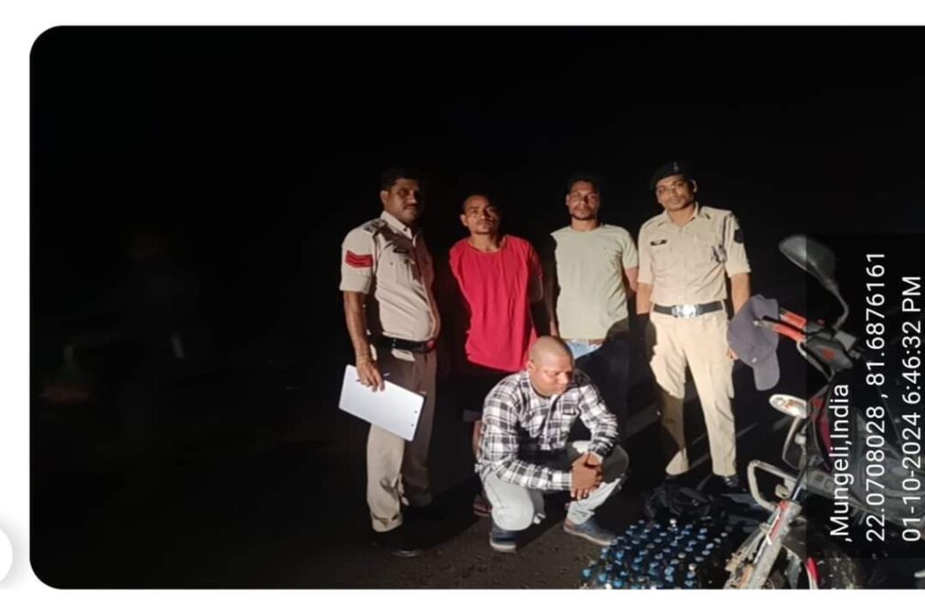 2. बलराम कोशले (उम्र 25 वर्ष, परमहंस वार्ड, मुंगेली) से 103 पाव देशी शराब (कुल 18.054 बल्क लीटर), नगद 2120 रु, और एक मोटरसाइकिल जप्त की गई।