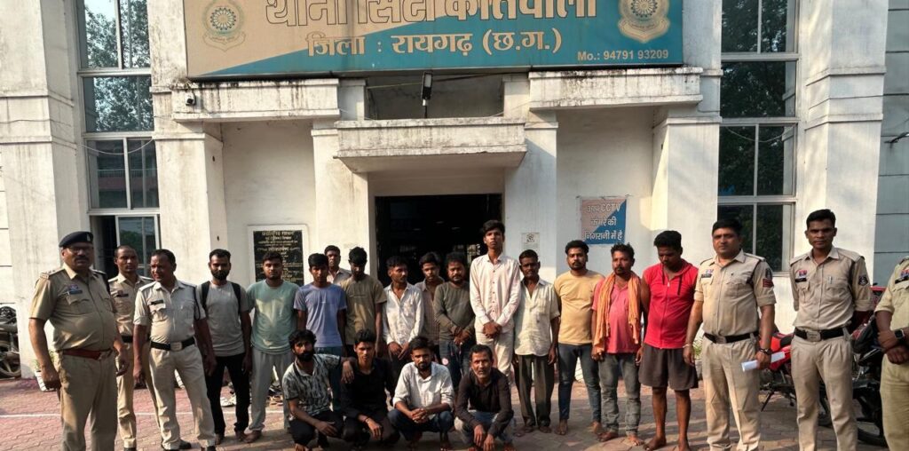 रायगढ़ : पुलिस अधीक्षक दिव्यांग कुमार पटेल के दिशा निर्देशन में अपराधियों पर कड़ा शिकंजा कसने हेतु आज सुबह जिला मुख्यालय में एक संगठित और व्यापक कॉबिंग गश्त अभियान चलाया गया। नगर पुलिस अधीक्षक आकाश शुक्ला के नेतृत्व में डीएसपी साइबर सेल अनिल विश्वकर्मा, डीएसपी ट्रैफिक उत्तम प्रताप सिंह, शहर के छह थाना प्रभारियों, रक्षित केंद्र के रिजर्व बल और थाना स्टाफ की संयुक्त टीमों ने कोतवाली, चक्रधरनगर और जूटमिल थाना क्षेत्रों में एक साथ दबिश दी।