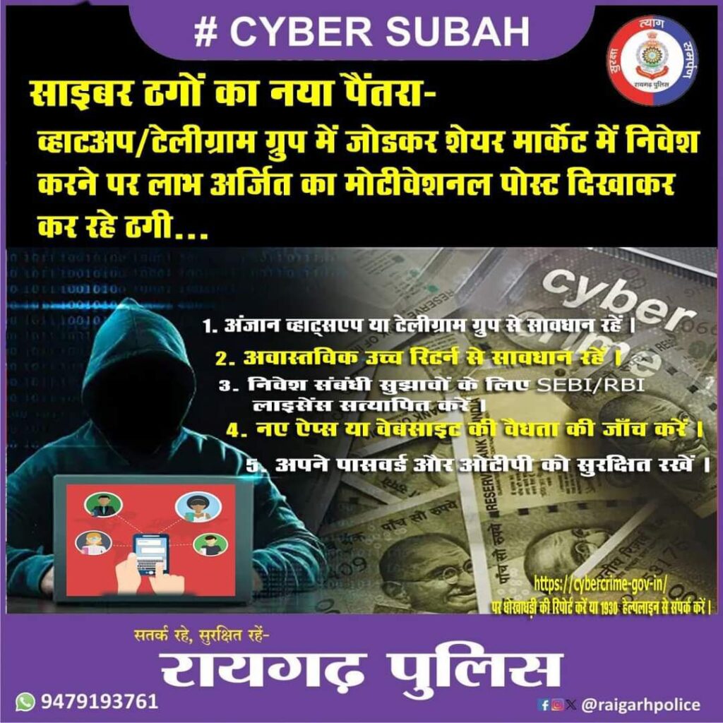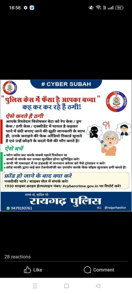 रायगढ़ पुलिस ने हाल ही में साइबर अपराधों को रोकने और आम लोगों को साइबर सुरक्षा के प्रति जागरूक करने के लिए एक व्यापक अभियान शुरू किया है। इस अभियान का उद्देश्य है: