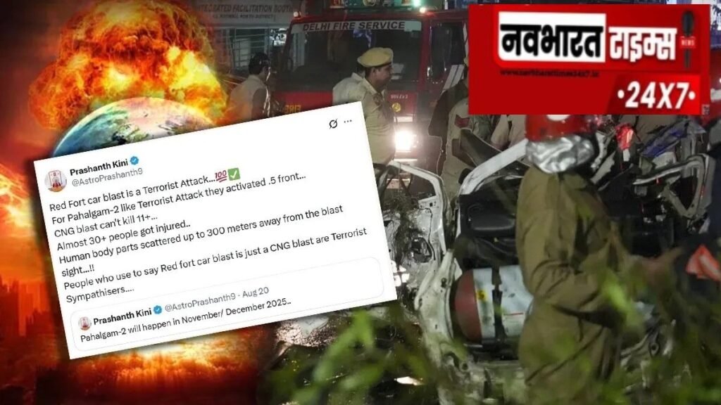 नई दिल्ली: दिल्ली के लाल किला मेट्रो स्टेशन के पास हुए भीषण कार ब्लास्ट ने पूरे देश को हिला कर रख दिया है। इस विस्फोट में अब तक 10 लोगों की मौत और 25 से ज्यादा लोगों के घायल होने की खबर है। धमाका इतना जबरदस्त था कि आसपास खड़ी गाड़ियों के शीशे टूट गए और इलाके में अफरा-तफरी मच गई। वहीं, इस घटना के तुरंत बाद सोशल मीडिया पर एक भारतीय ज्योतिषी प्रशांत किनी (Prashanth Kini) का नाम तेजी से ट्रेंड करने लगा — वजह है उनकी कई महीने पहले की गई भविष्यवाणी, जो अब हकीकत से मेल खाती दिख रही है।