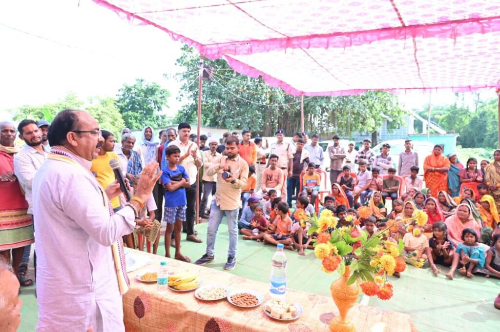 उपमुख्यमंत्री साव ने ग्रामीणों से कहा कि नवरात्रि त्योहार में और दशहरा के पहले अपने परिवारजनों से मिलने आया हूं, आपका हालचाल जानने आया हूं। मां भगवती से प्रार्थना है कि आपके परिवार को तरक्की और सुख समृद्धि प्रदान करे।
